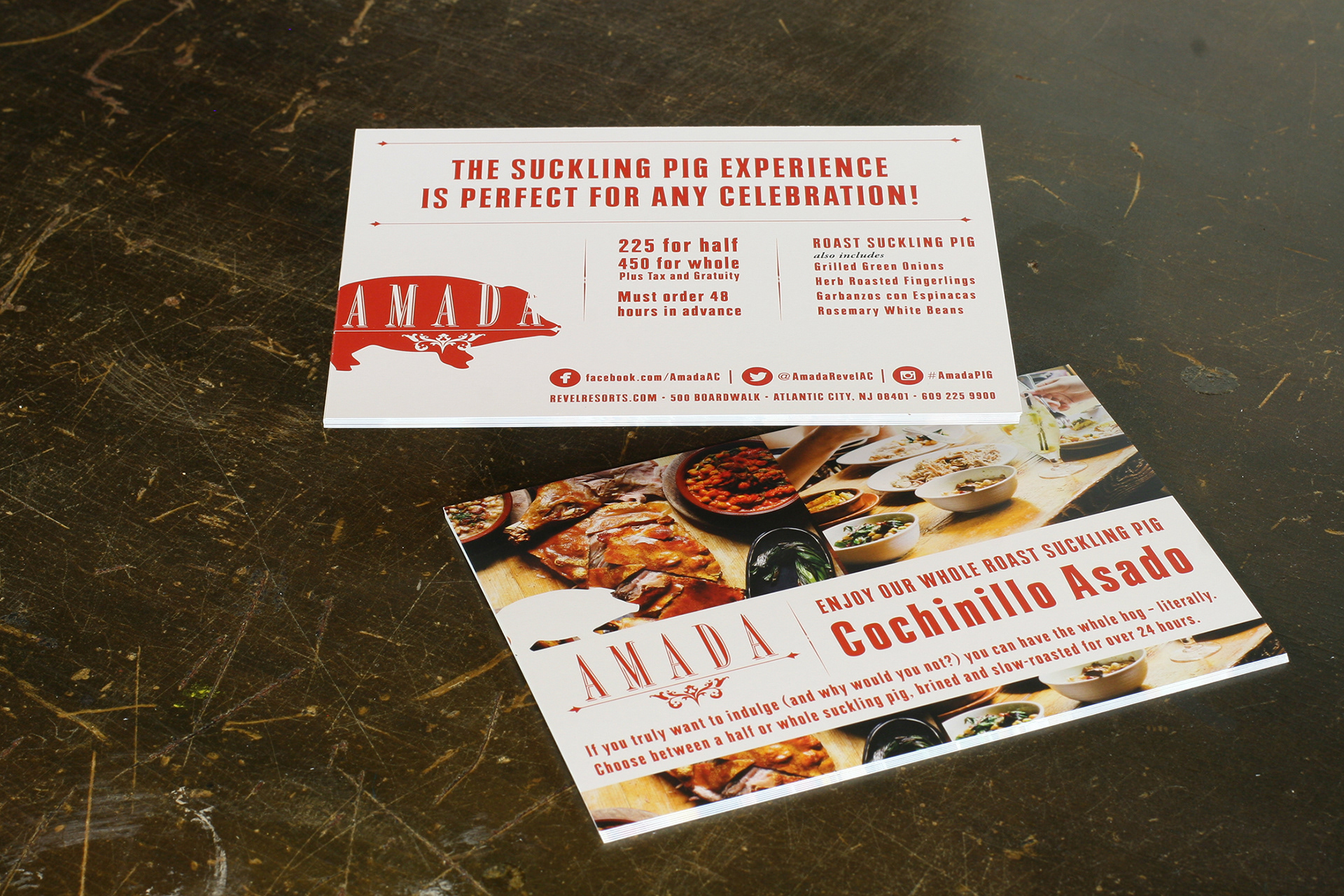 Postcard promoting the Cochinillo Asado Suckling Pig Experience at Amada.
