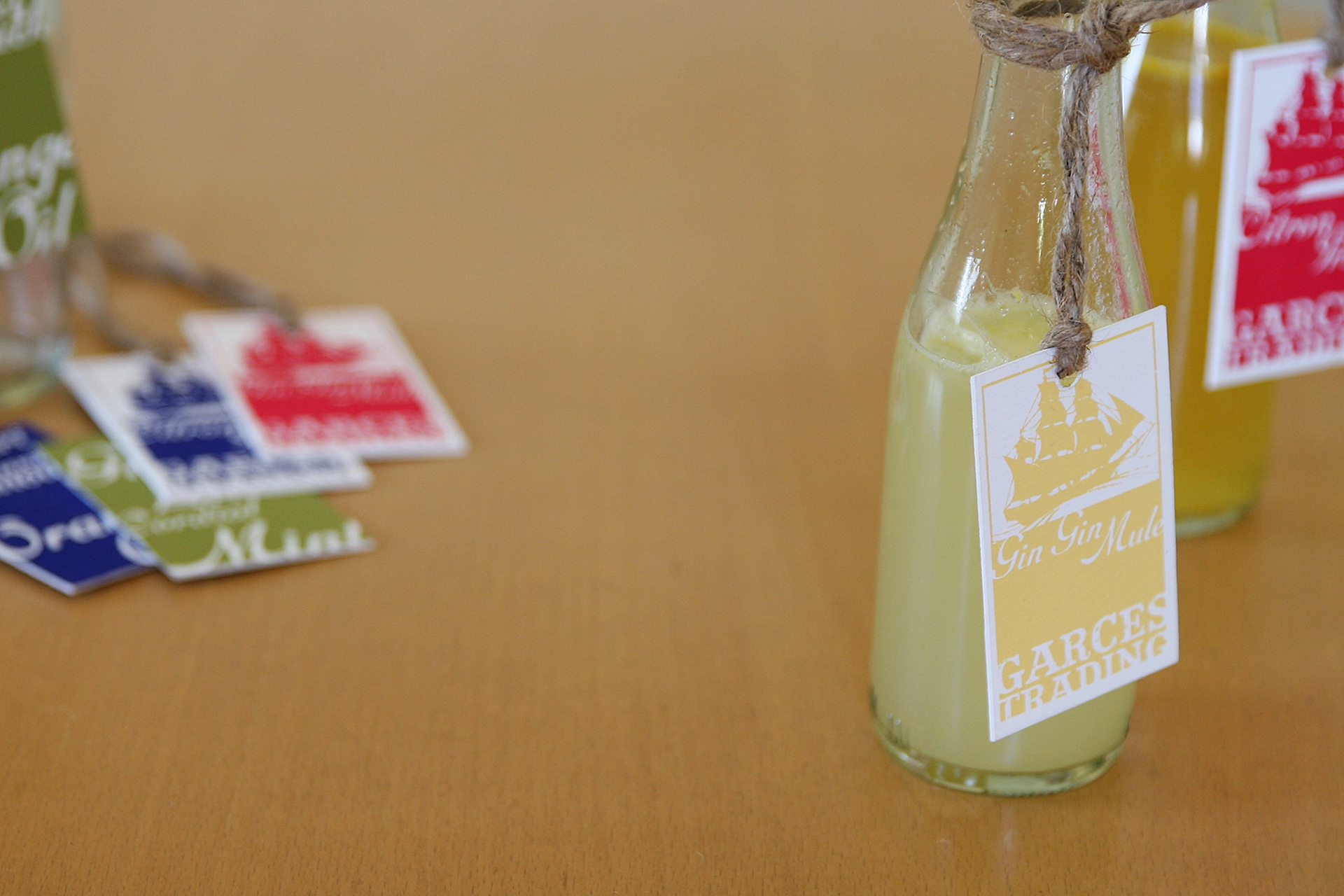Custom screen printed hang tags for the Garces Trading Company's artisanal carbonated beverage program.